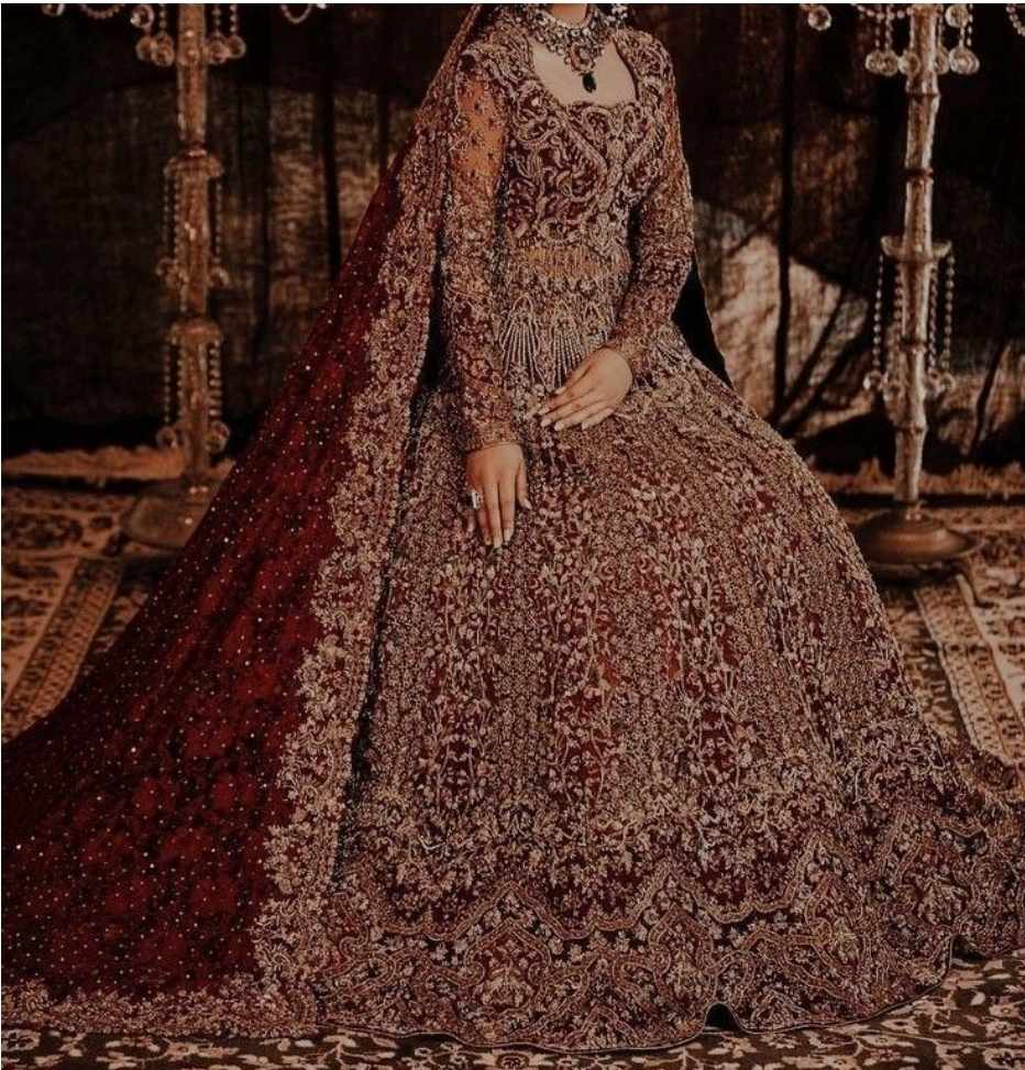 The moment she descended the stairs, I was done. Everything around me blurred into the background as my eyes locked on her. Her wedding dress, a masterpiece of deep maroon and intricate golden embroidery, shimmered under the soft glow of the chandeliers. The long, trailing veil added a regal grace, making her seem almost ethereal.